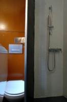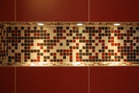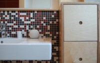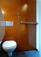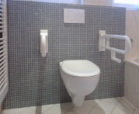 barrierefreie Badezimmerumgestaltung Haus S., Einpassung neuer Objekte und Vorwandinstallationen unter Beibehaltung des vorhandenen Fliesenspiegels